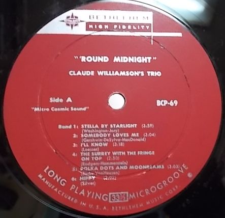 | 製品名 | 【米Bethlehem mono】Claude Williamson/'Round Midnight (Red Mitchell, Mel Lewis) |