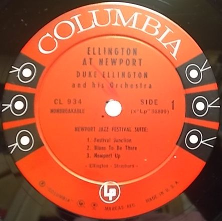米コロンビア、モノラル盤CL934<BR>56年録音<BR>56年に行われたニューポート・ジャズ・フェスティヴァルのトリを務めたデューク・エリントン楽団の演奏はいつになく白熱したものとなり、会場の聴衆は興奮の坩堝に叩き込まれます。<BR>ジミー・ハミルトンやポール・ゴンサルヴェスがすごいソロを披露します。<BR>因みにマトリックスはXLP38809-1Bと38810-1A。<BR>Deep Groove<BR><BR>Duke Ellington (p) <BR>John W. Cook (tp) <BR>Willis R. Nance (tp) <BR>Clark Terry (tp) <BR>William "Cat" Anderson (tp) <BR>Russell Procope (as) <BR>Johnny Hodges (as) <BR>Paul Gonsalves (ts) <BR>Jimmy Hamilton (cl) <BR>Harry H. Carney (bars) <BR>Britt B. Woodman (tb) <BR>Quentin L. Jackson (tb) <BR>John Conrad Sanders (tb) <BR>Jimmy Woode (b) <BR>Sam Woodyard (ds)<BR>Jo Jones (ds)<BR><BR>Newport Jazz Festival Suite<BR> Festival Junction<BR> Blues To Be There<BR> Newport Up<BR>Jeep's Blues<BR>Diminuendo and Crescendo in Blue<BR><BR>ジャケットの数ヶ所に細かい擦れ、天割れ4センチ、角に擦れ、裏面が黄ばんでいますが概ね良好です。<BR>盤には短い傷がA1の後半にありたまにチリノイズがする以外は良好です。