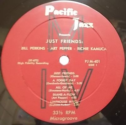 | 製品名 | 【米Pacific Jazz mono】Bill Perkins/Just Friends (Art Pepper, Richie Kamuca, Hampton Hawes, etc) |