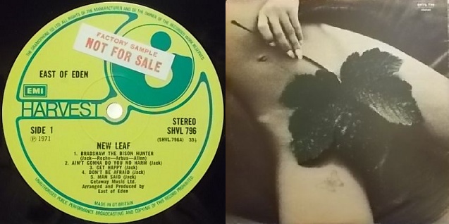 英ハーヴェスト盤SHVL796<BR>71年録音 ファクトリー・サンプル盤<BR>初期のエキゾチックでひねりの効いたジャズ・ロック路線を継承した曲で始まるイースト・オブ・エデンの4作目。<BR>聴き進むにつれスワンプ色が強まり、初期のサイケデリック臭漂うジャズ・ロックとブルース・ロックが入り乱れたサウンドからはかなり方向転換。<BR>但し、英国バンドに共通するどこかどんよりとしたブリティッシュ・スワンプ・ロックで、これはこれでかなり完成度の高い作品。<BR>ヒプノシスに依るジャケット・デザインは秀逸。<BR>マトリックスはSHVL796A3とB3のファースト・プレス。<BR><BR>David Jack (vo, b, g)<BR>Jim Roche (g)<BR>Dave Arbus (vln, sax, fl)<BR>Jeff Allen (ds, perc)<BR>Dave Weller (sax)<BR><BR>Bradshaw The Bison Hunter<BR>Ain't Gonna Do You No Harm<BR>Get Happy<BR>Don't Be Afraid<BR>Man Said<BR>Song For No One<BR>Joe<BR>Nothin' To Do<BR>Road Song<BR>Home Blues<BR><BR>見開きジャケットの上部と右端に擦れ、右下に傷み、天、背、角と背に擦れ、裏面に軽いリングウエアがあり、左下に軽い折れ皺、右下にシール痕があります。レーベルA面にファクトリー・サンプルのシール。<BR>盤質良好です。